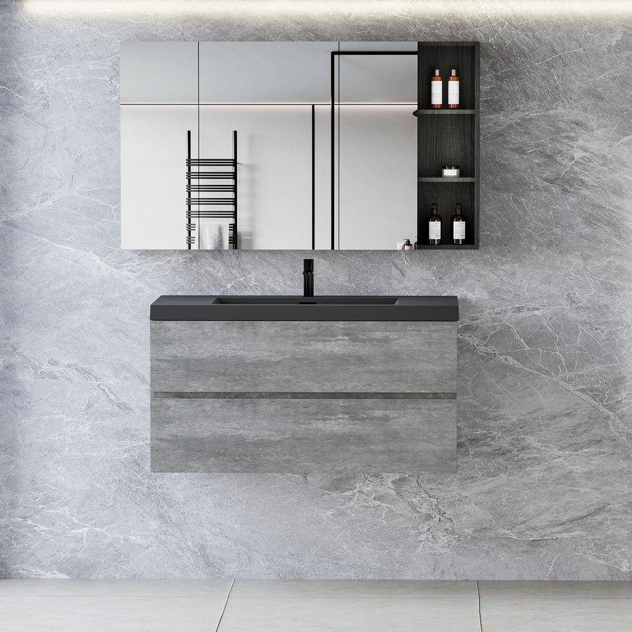 Allreno - 42" Wall-Mounted Single Sink Bathroom Vanity Cabinet in Gray with Blac